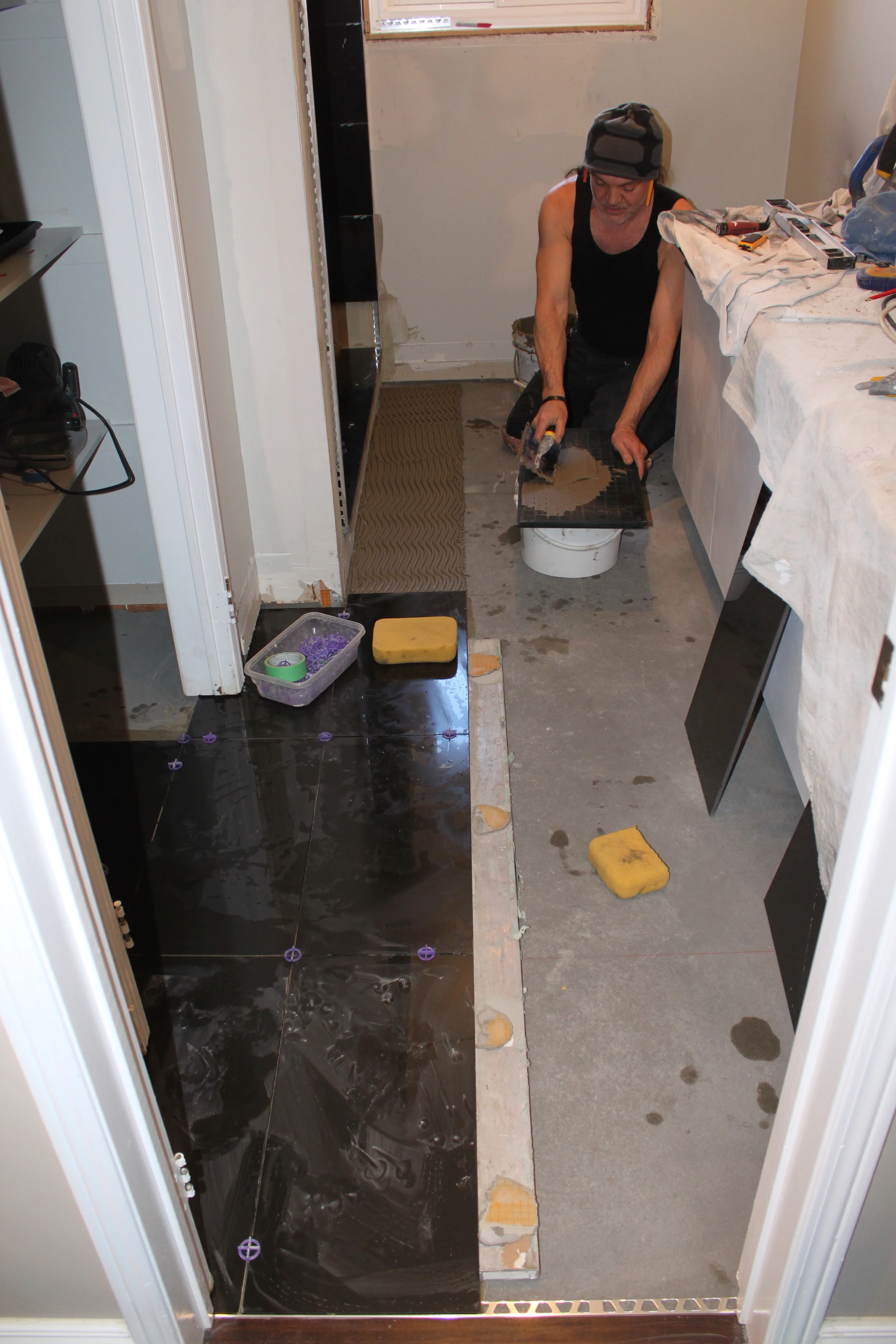 Our photo gallery includes a large number of photos from different job sites and categorized by job type. As you can see, all we do is professional tile installation, heated floor systems and floor levelling.